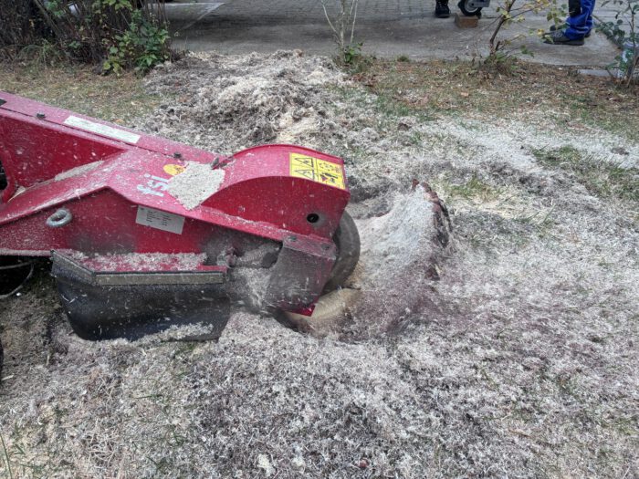Die Fräse machte nicht nur Dreck und Lärm sondern auch einen fantastischen Job. Dank der ambitionierten Maschinenführer konnten alle Baumstümpfe entfernt werden.