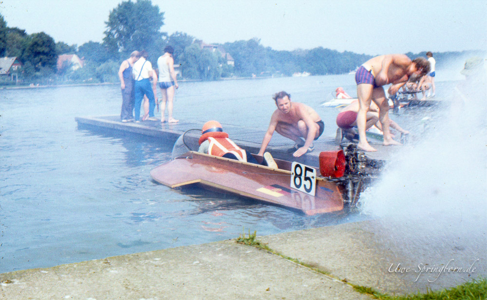 Bis zur Wende 1989 hat der MC Grünau e.V. im Auftrag des ADMV (Allgemeiner Deutscher Motorverband) die Internationalen Motorbootrennen in Berlin-Grünau im August eines jeden Jahres organisiert. Beim Stöbern in alten Fotos bin ich auf eine Diakiste gestoßen, die viele Jahre in der hintersten Ecke eines Schrankes schlummerte. Im Folgenden ein kleiner Rückblick auf das Motorbootrennen von 1984 in Berlin-Grünau.